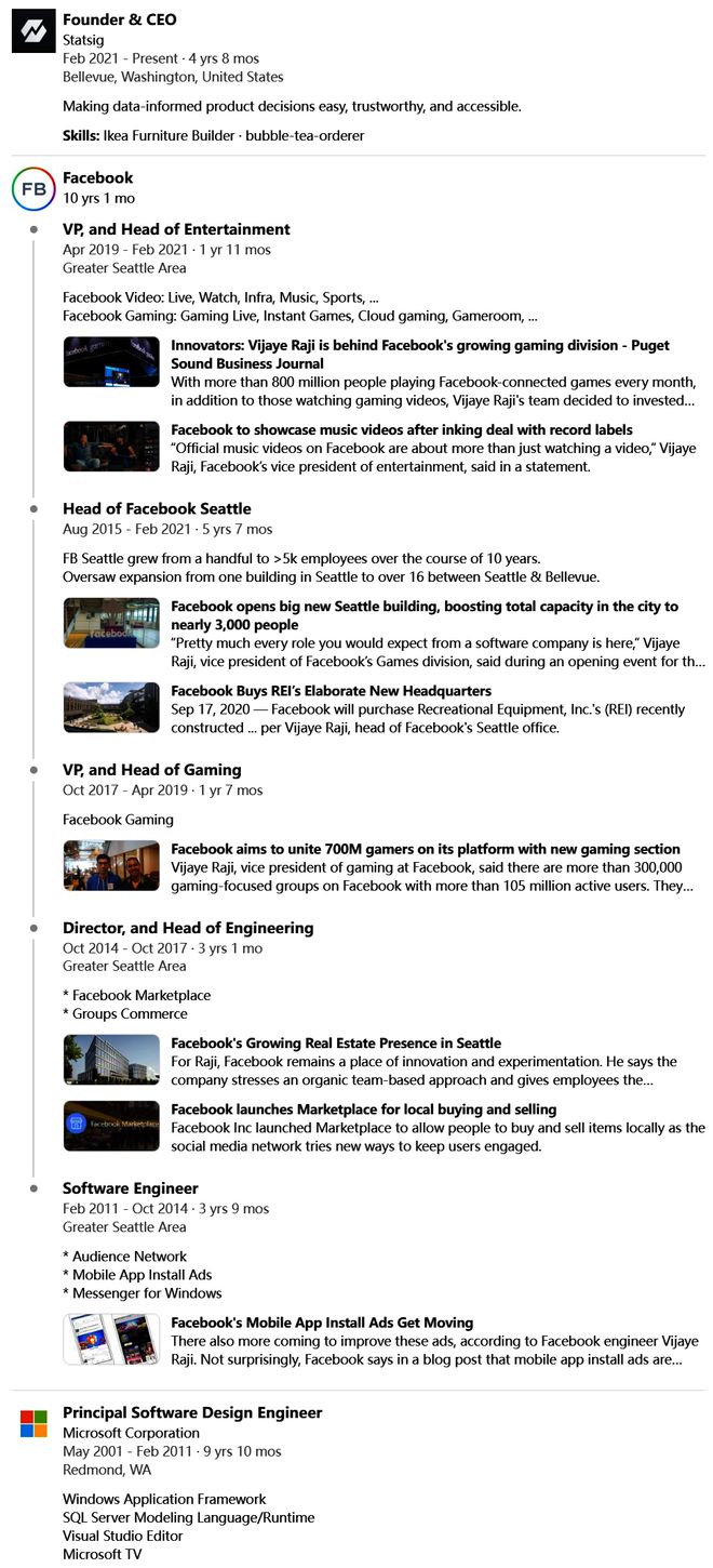Vijaye Raji曾在微软干过约十年,加入Facebook(Meta)后领导大规模消费者工程长达十年。